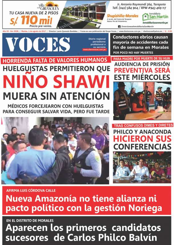 Portada del día Martes 01 de Agosto del 2017