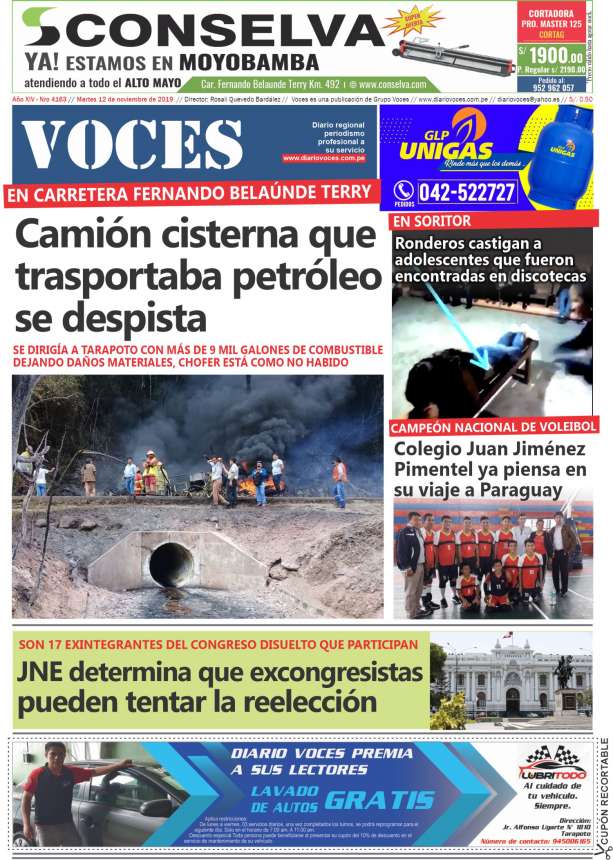 Portada del día Martes 12 de Noviembre de 2019