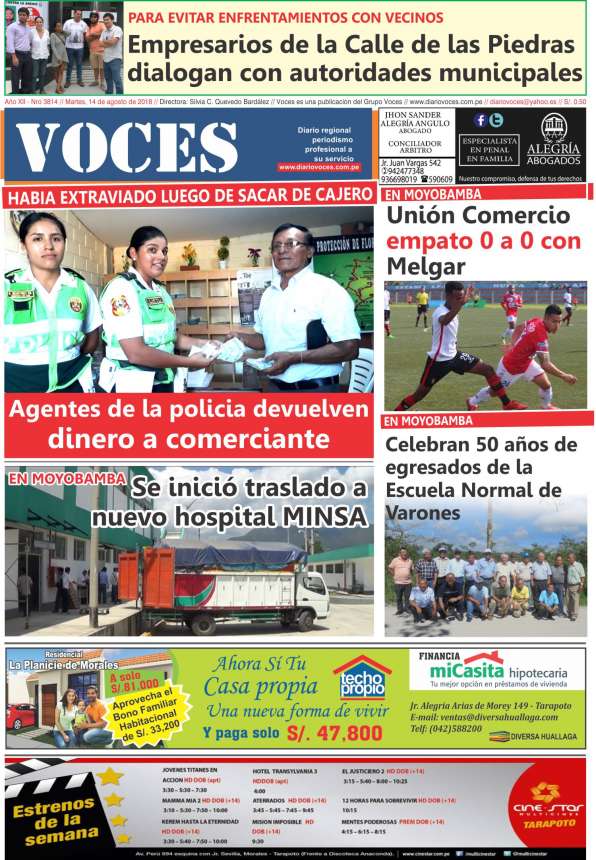 Portada del día Martes 14 de Agosto del 2018