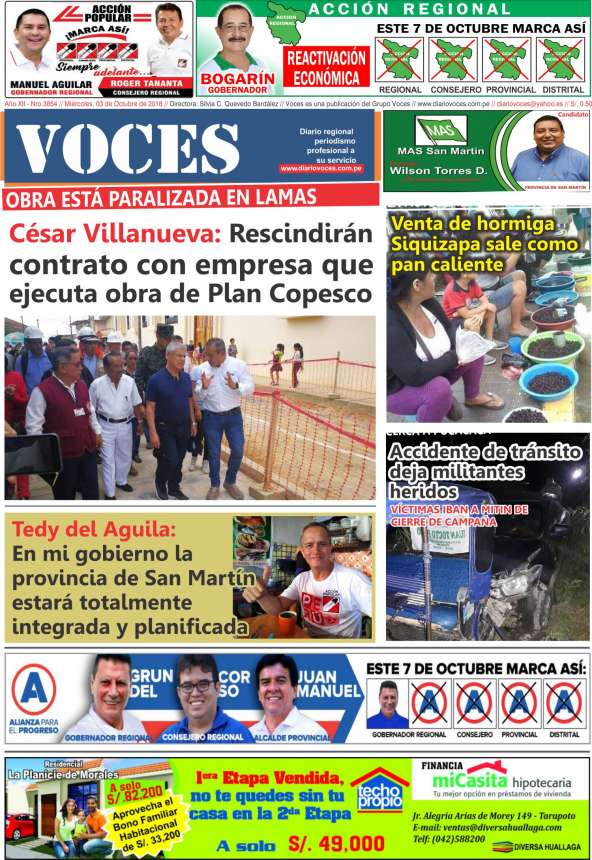 Portada del día Miércoles 03 de Octubre del 2018