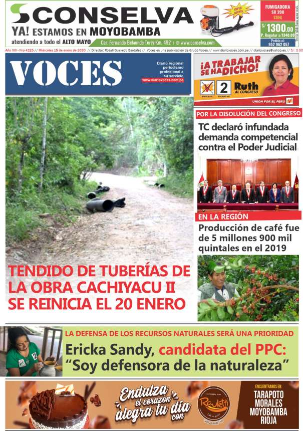 Portada del día Miércoles 15 de Enero de 2019