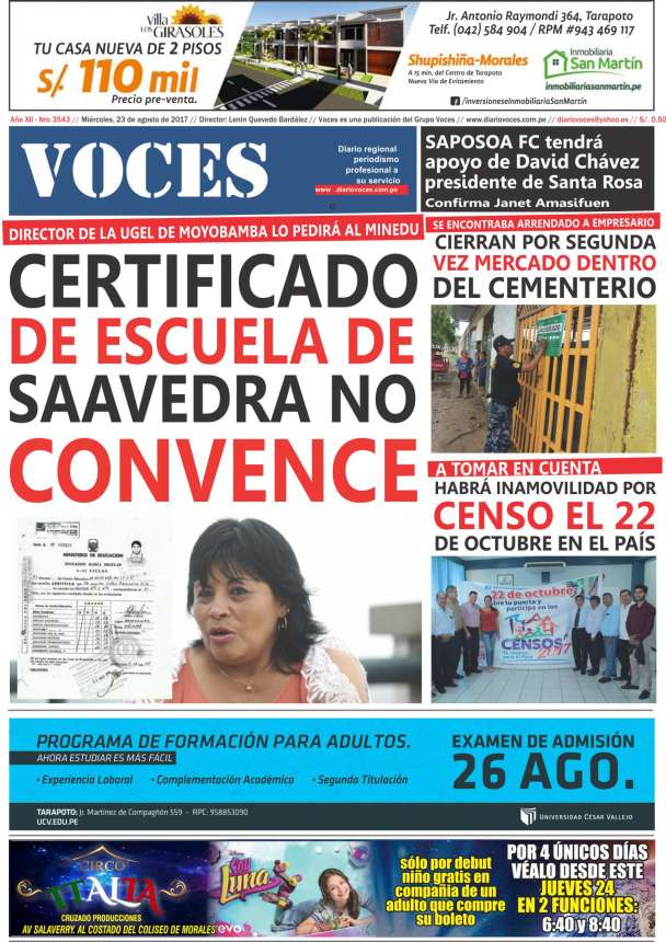 Portada del día Miércoles 23 Agosto del 2017