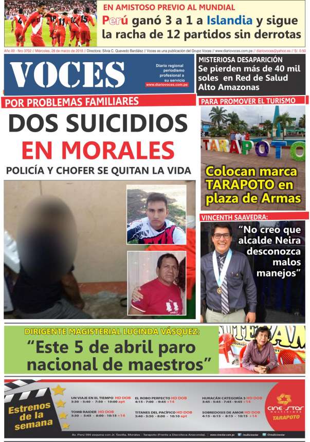 Portada del día Miércoles 28 de Marzo del 2018