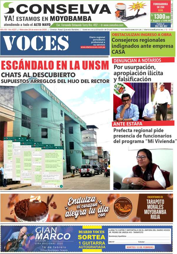 Portada del día Miércoles 29 de Enero de 2020
