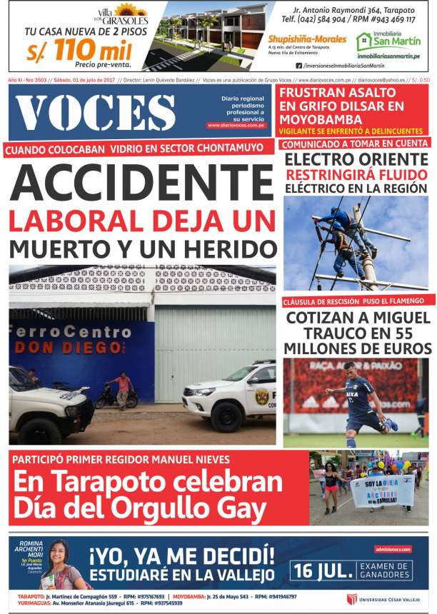 Portada del día Sábado 01 de Julio del 2017