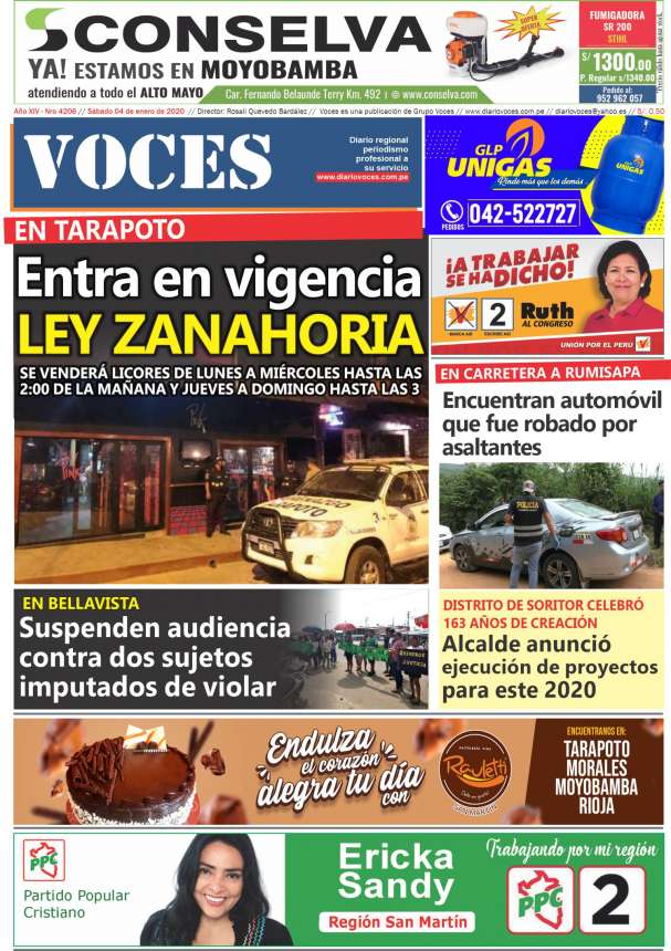 Portada del día Sábado 04 de Enero de 2019