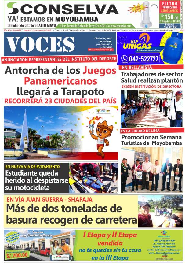 Portada del día Sábado 18 de Mayo de 2019