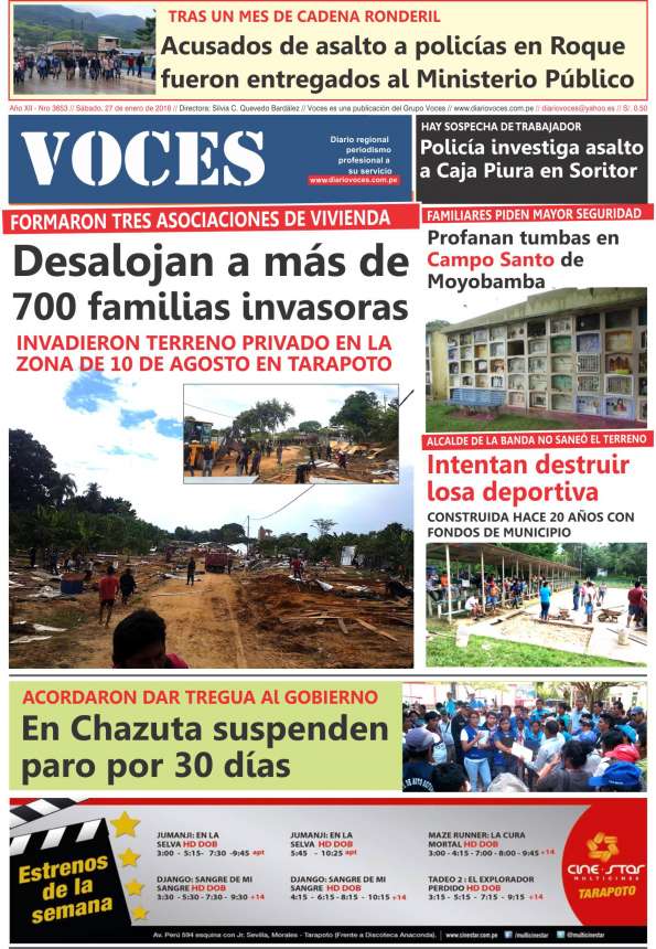 Portada del día Sábado 27 de Enero del 2018