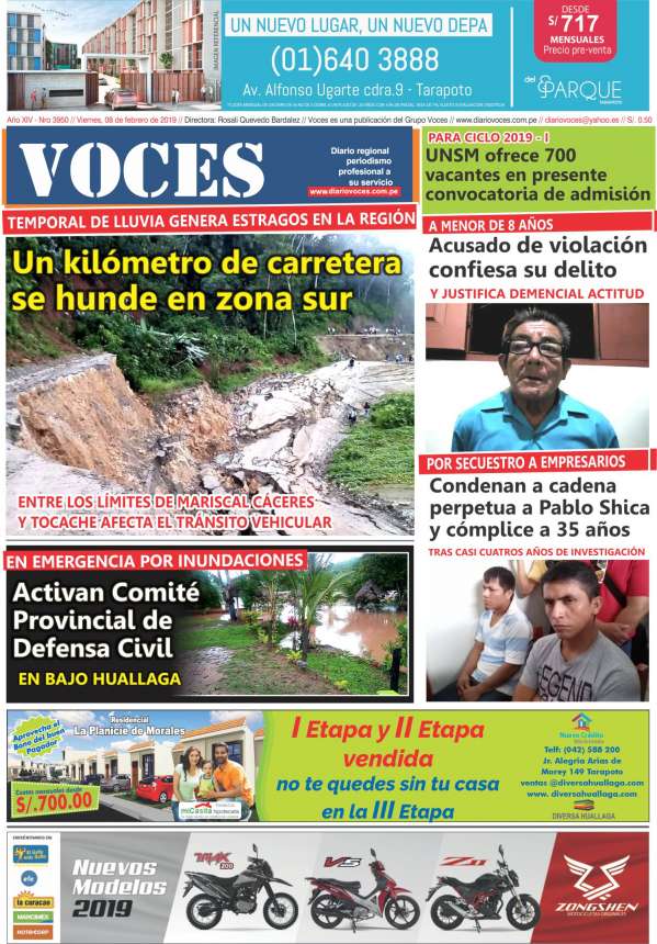 Portada del día Viernes 08 de Febrero de 2019