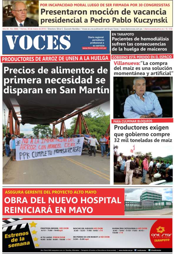 Portada del día Viernes 09 de Marzo del 2018