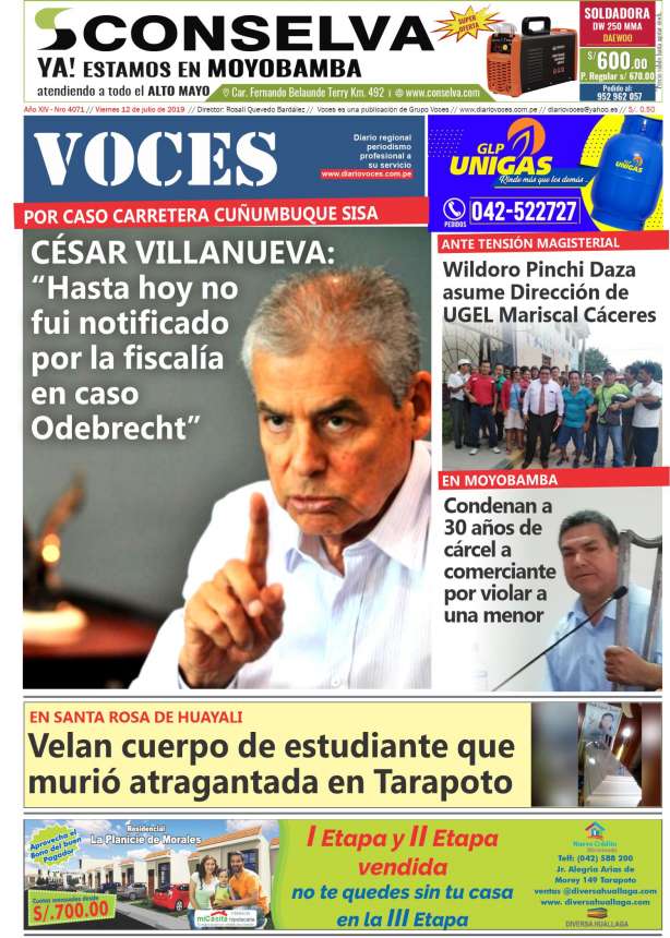 Portada del día Viernes 12 de Julio de 2019