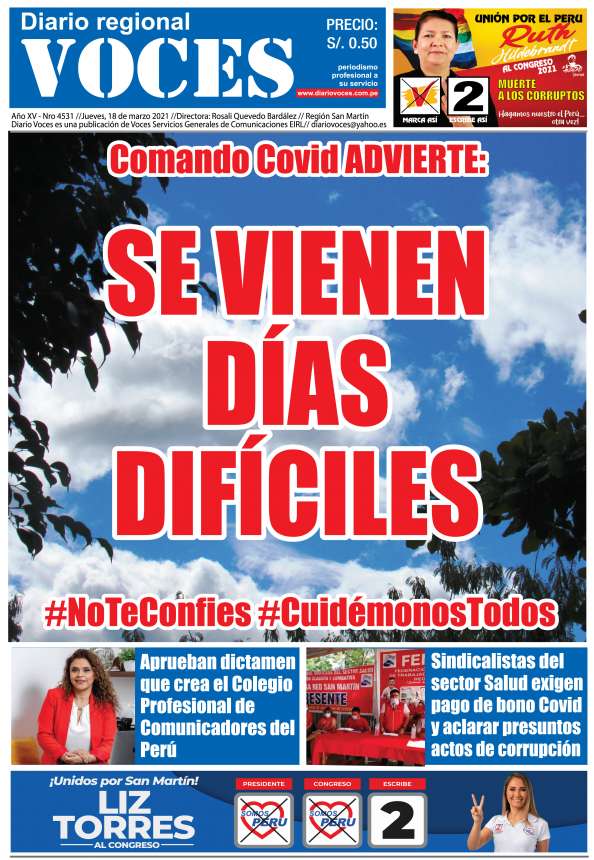 Portada, jueves 17 de marzo 2021