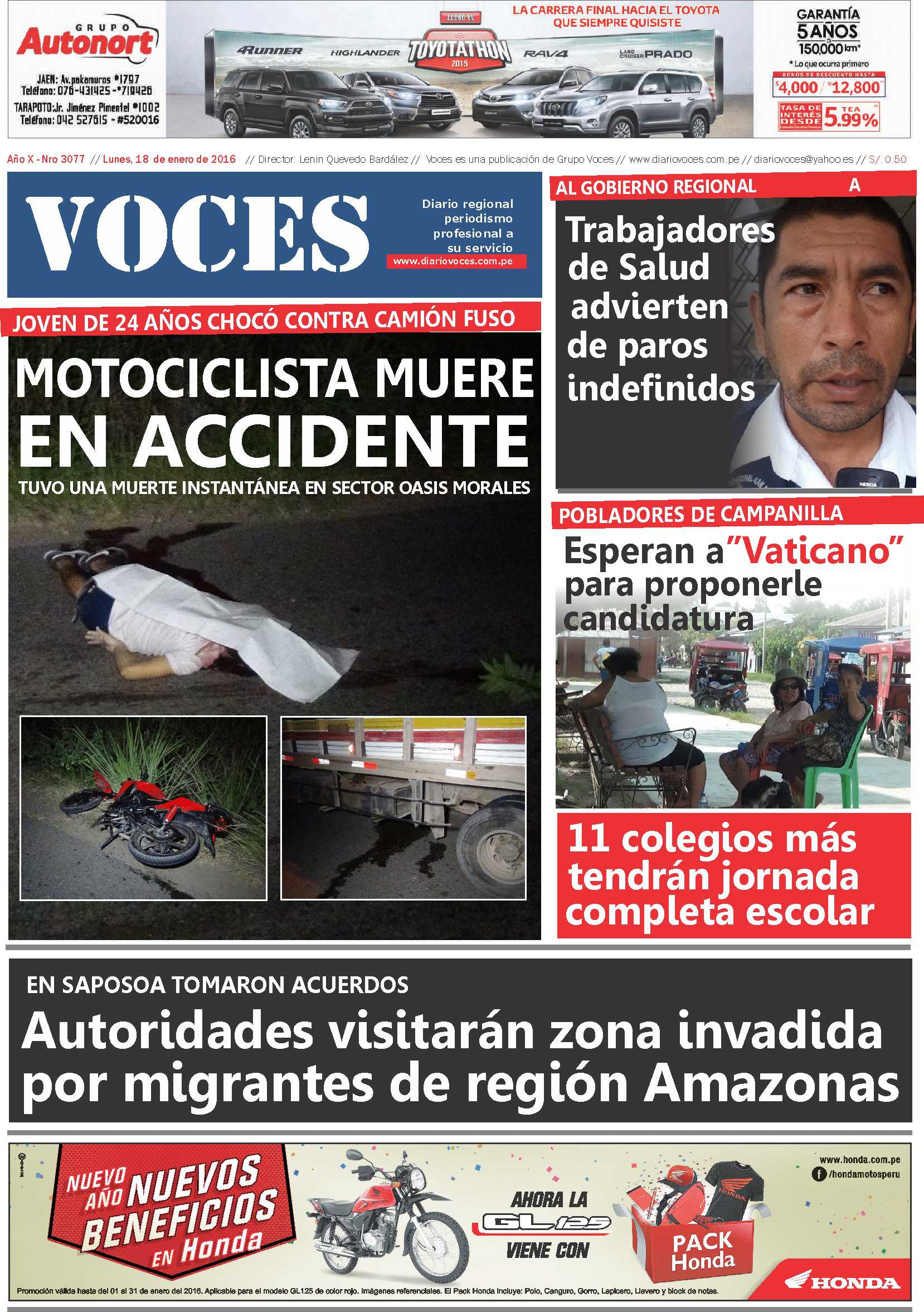 Portada del Lunes 18 de enero del 2016