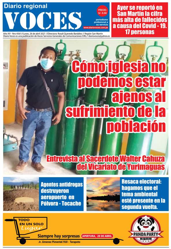 Portada, lunes 26 de abril de 2021