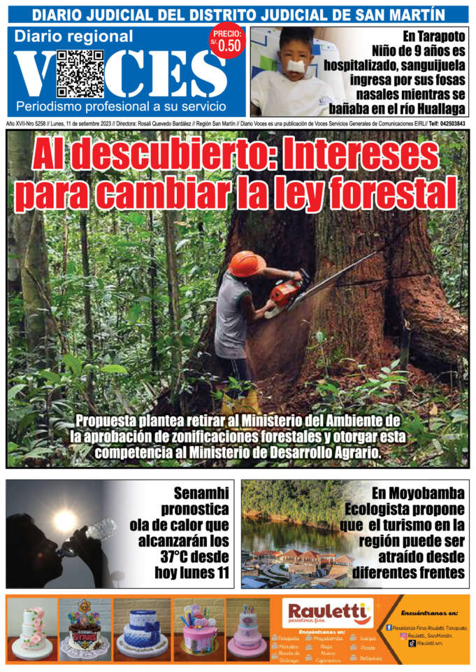 Portada, lunes 11 de setiembre 2023