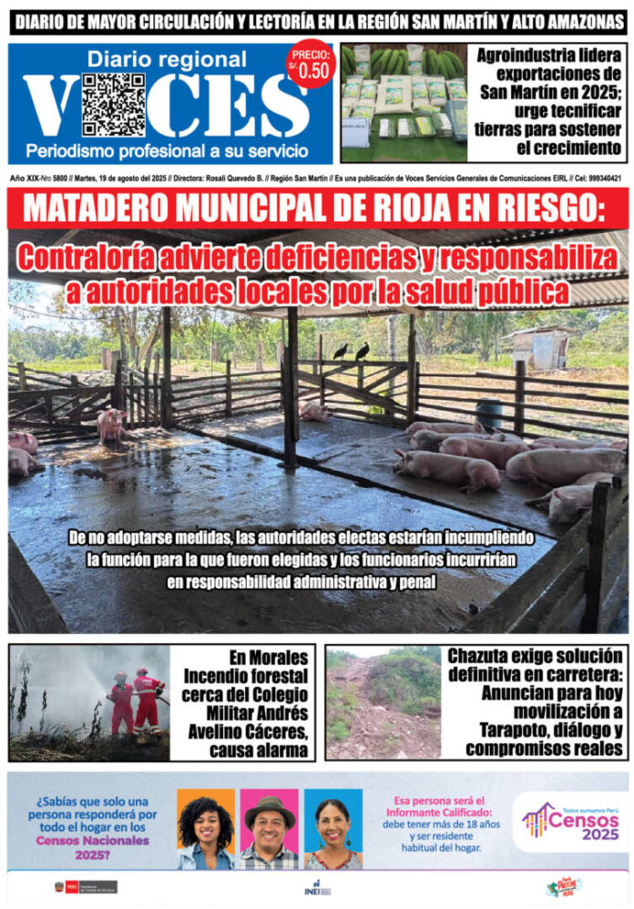 InicioActualidad ActualidadPortada del día Portada, martes 19 de agosto 2025 By Voces 19/08/2025 223 FacebookTwitterWhatsAppLinkedinTelegram TagsDestacadoPortada del día Cuota FacebookTwitterWhatsAppLinkedinTelegram Artículo anteriorMás de 2300 madres aseguradas se benefician con subsidio por lactancia de EsSaludArtículo siguienteDiario Digital, martes 19 de agosto 2025 Artículos relacionados Actualidad Huachitas, sábado 04 de octubre 2025 Actualidad Este domingo en Moyobamba ADT va por la revancha ¡Que Gane el Fútbol, No a la Violencia! Actualidad Arturo Alegría preside Comisión de Constitución sin tener estudios universitarios Mantente conectado34,742FansMe gusta478SeguidoresSeguir1,851SeguidoresSeguir ÚLTIMOS ARTÍCULOS Actualidad Huachitas, sábado 04 de octubre 2025 Actualidad Este domingo en Moyobamba ADT va por la revancha ¡Que Gane el Fútbol, No a la Violencia! Actualidad Arturo Alegría preside Comisión de Constitución sin tener estudios universitarios Actualidad Antonio Machado, una adolescente y una casada marcaron su vida Cargar más