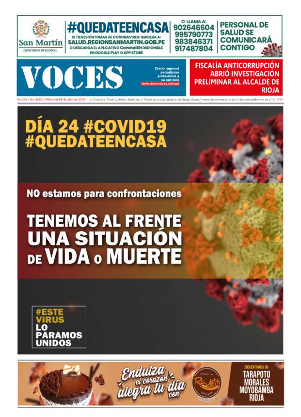 Portada Miércoles 8 de abril 2020