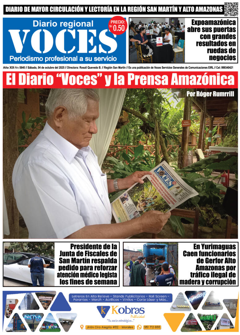 InicioActualidad ActualidadPortada del día Portada, sábado 04 de octubre 2025 By Voces 04/10/2025 3 FacebookTwitterWhatsAppLinkedinTelegram TagsDestacadoPortada del día Cuota FacebookTwitterWhatsAppLinkedinTelegram Artículo anteriorINPE: Frustran ingreso de visitante extranjera con droga oculta en partes íntimasArtículo siguienteDiario Digital, sábado 04 de octubre 2025 Artículos relacionados Actualidad Huachitas, sábado 04 de octubre 2025 Actualidad Este domingo en Moyobamba ADT va por la revancha ¡Que Gane el Fútbol, No a la Violencia! Actualidad Arturo Alegría preside Comisión de Constitución sin tener estudios universitarios Mantente conectado34,742FansMe gusta478SeguidoresSeguir1,851SeguidoresSeguir ÚLTIMOS ARTÍCULOS Actualidad Huachitas, sábado 04 de octubre 2025 Actualidad Este domingo en Moyobamba ADT va por la revancha ¡Que Gane el Fútbol, No a la Violencia! Actualidad Arturo Alegría preside Comisión de Constitución sin tener estudios universitarios Actualidad Antonio Machado, una adolescente y una casada marcaron su vida Cargar más