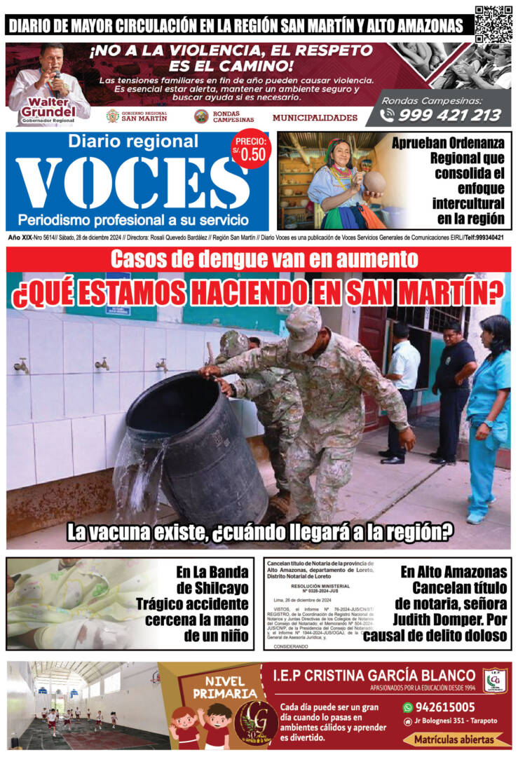 Portada, sábado 28 de diciembre 2024