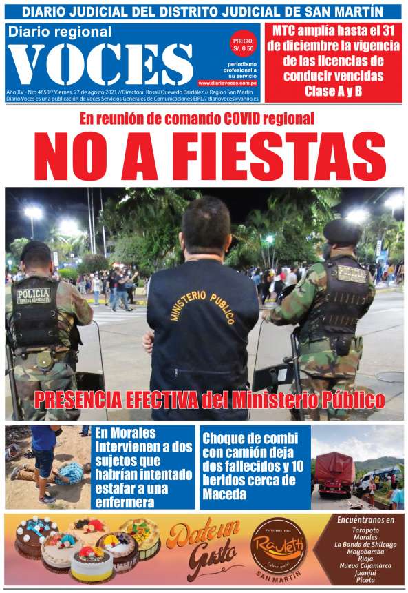 Portada, viernes 27 de agosto 2021