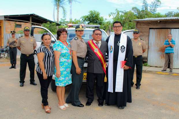 El acto protocolar se hizo en los exteriores de la Comisaría de Lamas, donde el párroco de la ciudad Segundo Fatama Rucoba procedió con el acto de bendición para que la moderna camioneta sea dirigida y puesta en funcionamiento por las autoridades policiales a fin de erradicar la delincuencia. También estuvo presente la subprefecta provincial Julia Pérez González, comisario de Lamas Angely López Bardales.