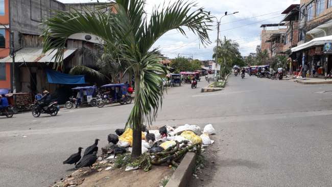 Desde la semana pasada, luego del colapso del relleno sanitario de Tarapoto, durante el fin de semana se pudo observar acumulación de basura en diferentes sectores de la ciudad. En varias calles del barrio Comercio se puede observar la presencia de gallinazos que dan un mal aspecto a esa zona que es muy visitada por decenas de personas que acuden de los centros de abasto.