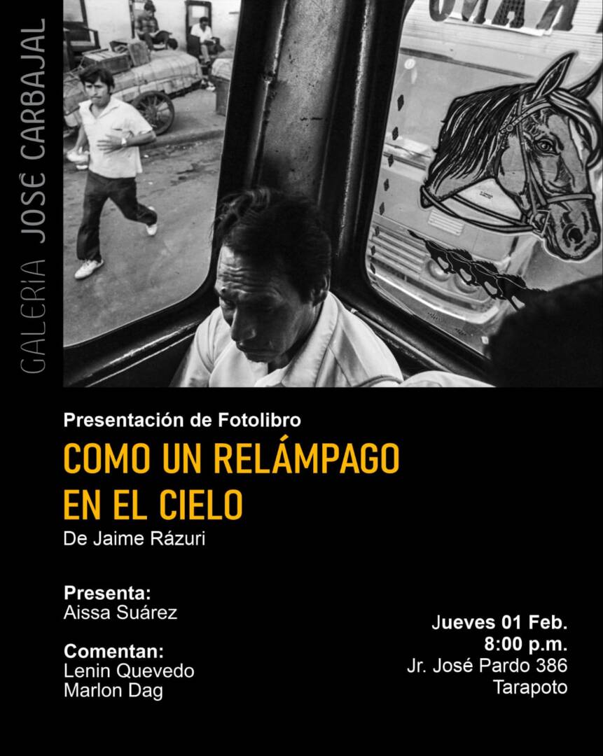 Hoy jueves 1 de febrero del 2024, la Galería José Carbajal (Jr. José Pardo 386, Tarapoto) será escenario de la presentación del fotolibro «Como un Relámpago en el Cielo» de Jaime Rázuri. Este impactante relato visual, resultado de más de un año de trabajo en colaboración con el editor general Giancarlo Shibayama, se sumerge en la vida fotográfica del autor durante sus 22 años como fotoperiodista de la Agencia France Presse.