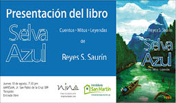 En el marco de la feria Expo Amazónica 2017 que se llevará a cabo simultáneamente en las ciudades de Moyobamba y Tarapoto, se presentará el libro SELVA AZUL (Cuentos – Mitos – Leyendas) de Reyes S. Saurín, el día jueves 10 de agosto a las 7:30 en el local de AMRESAM, ubicado en el Jr. San Pablo de la Cruz 389, Tarapoto.