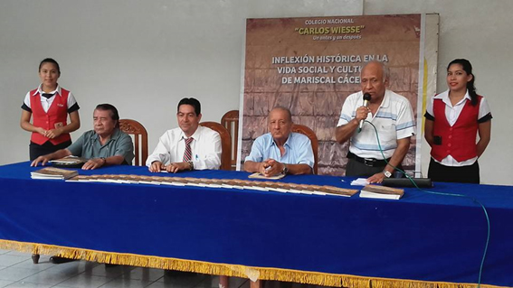Juanjui. En una actividad cultural que tiene pocos precedentes en esta ciudad, ayer por la mañana, se hizo la presentación del libro: “Carlos Wiesse: Un Antes y un Después. Inflexión Histórica en la Vida Social y Cultural de Mariscal Cáceres” escrito por el Prof. Wilson Pérez Iglesias, exalumno e integrante de la primera promoción de ese plantel.