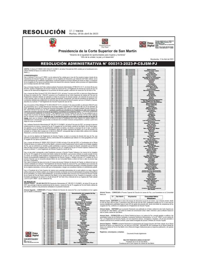 Presidencia de la Corte de San Martin: Aviso de Convocatoria N° 001-2023-CD-JS-CSJSM/PJ