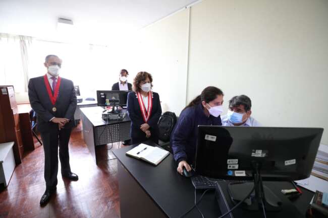 Después, la titular del Poder Judicial estuvo en la sede de los juzgados y salas laborales de Jesús María, donde verificó el uso por parte de los magistrados/as de los aplicativos Casillero Digital de Jueces y Juezas, así como el Módulo del Sentido de Decisiones Judiciales.
