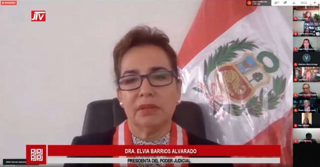 La Presidenta del Poder Judicial, Elvia Barrios Alvarado, hizo un pedido a los jueces y juezas a nivel nacional a que redoblen sus esfuerzos a favor de solucionar los conflictos judiciales, para construir una sociedad de paz, tal como lo demandan, afirmó, millones de peruanos.