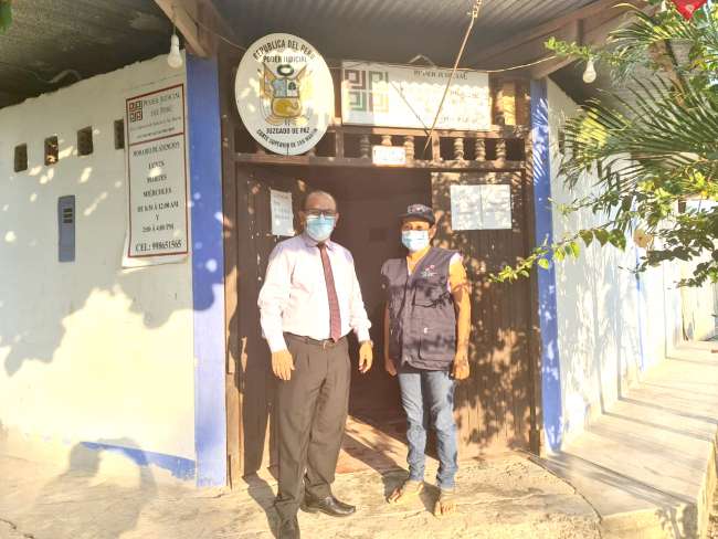 Los jueces de paz Arnulfo Córdova Aniceto e Ylmer Saavedra Chujutally de Solsol agradecieron la visita del presidente a quien informaron sus requerimientos y necesidades en logística y útiles de escritorio.