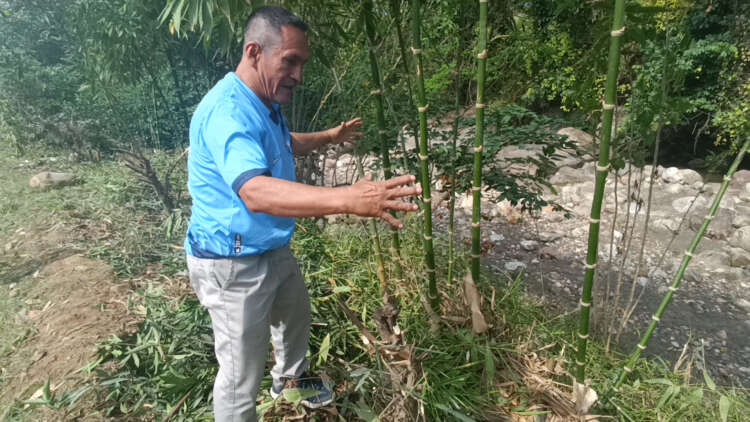 El dirigente exige a los representantes del programa Lurawi Perú y a las autoridades de la Municipalidad Distrital de la Banda de Shilcayo que se proceda a la reforestación de la zona afectada para proteger la orilla del río ante posibles crecidas del caudal. (Hugo Anteparra)