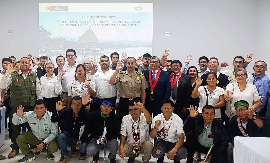 Este espacio de diálogo reunió a autoridades y representantes de instituciones clave, como el General PNP Milton Javier Cabrera Ríos, jefe de la Región Policial de San Martín, y el Presidente de la Junta de Fiscales Superiores de San Martín, Dr. Juan Domingo León Estrella. La reunión tuvo como objetivo diseñar estrategias para prevenir, atender y hacer seguimiento a los riesgos que enfrentan los defensores de derechos humanos, especialmente en contextos de conflicto social y defensa del medio ambiente.
