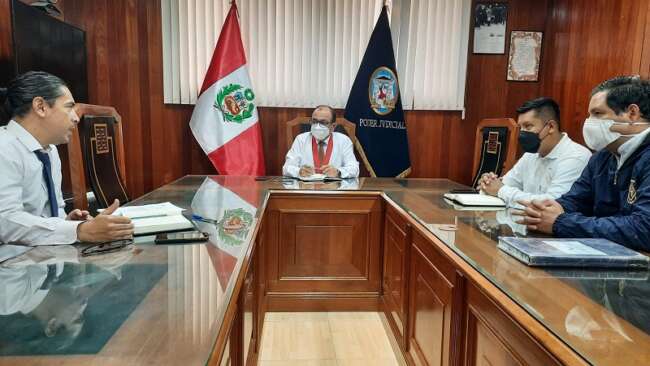 El presidente de la Corte Superior de Justicia de San Martín, Mg. Heriberto Gálvez Herrera, sostuvo una reunión interinstitucional de trabajo con el doctor Jhon Jack Osores Tello, jefe de la Unidad Médico Legal del Ministerio Público del Distrito Fiscal de San Martín a fin de adoptar acuerdos que coadyuven en la atención de las audiencias únicas (Cámara Gesell) programadas por los Juzgados de Investigación Preparatoria de este Distrito Judicial.