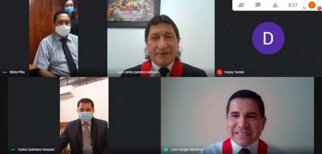 El doctor Vargas Martínez felicitó al presidente del Jurado Electoral Especial de Moyobamba, doctor Juan Carlos Paredes Bardales, augurándole éxitos en la administración de justicia electoral en la región, a fin de garantizar el respeto a la voluntad ciudadana, en el próximo proceso electoral a realizarse el domingo 11 de abril de 2021.