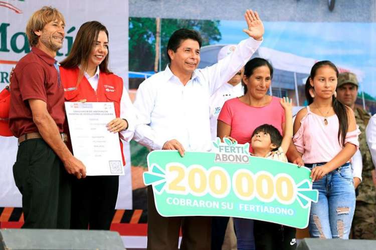 En la plaza de Armas de Moyobamba (San Martín), a donde llegó para entregar el cheque al beneficiario 200 000 de FertiAbono y tres ambulancias a la Diresa San Martín, reiteró que su gestión no discrimina a ninguna persona y que llegó al Ejecutivo para cerrar las brechas históricas.