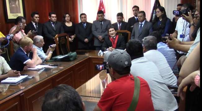 Hay que mencionar que el periodista Humberto Landeo fue impedido por efectivos de la Policía Nacional a la conferencia de prensa convocada por Juan Carlos Bardales, quien dijo no va a permitir que una persona proceda por calumniarlo ingrese a hacerle preguntas. (Franclin Laván)