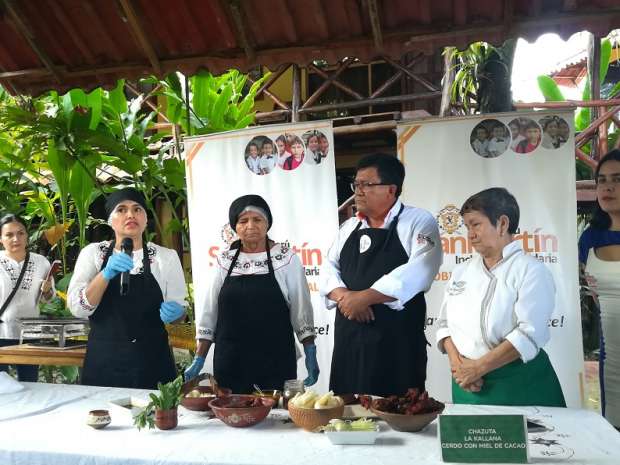 En medio de algarabía, ayer se presentó distintas comidas con insumos amazónicos preparados por representantes de comunidades nativas de Lamas y Chazuta, siendo los más representativos: Costillita de cerdo en miel de cacao, ninajuane de callampa y carapulcra de fariña. En medio de la actividad el gobernador regional se animó a preparar ceviche de coco con pupura de plátano, con la finalidad de promover el uso de insumos amazónicos que contamos en la región.