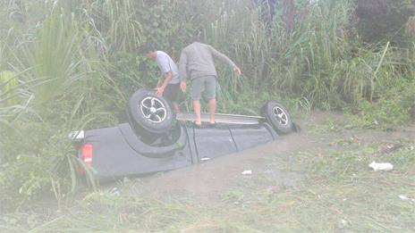 El mandamás del ‘Poderoso de Altomayo’ se encontraba a bordo de su camioneta de placa S1P-811 cuando se despistó cerca de la zona Keiko Sofía Fujimori producto de la inundación de la vía por el desborde de los ríos.