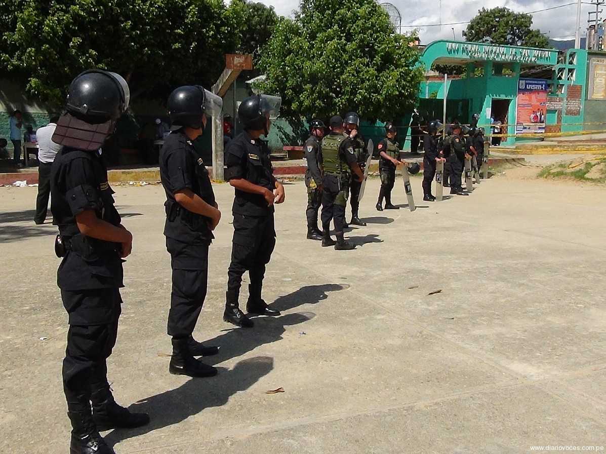 Hasta el lugar llegó un fuerte contingente policial, con la finalidad de brindar seguridad y evitar hechos vandálicos tal como ocurrió el martes, desde muy temprano los estudiantes llegaron a formar una fila para emitir su voto, el docente Carlos Nolte Campos, señaló que es parte del proceso para que se adecúen a la nueva Ley Universitaria.