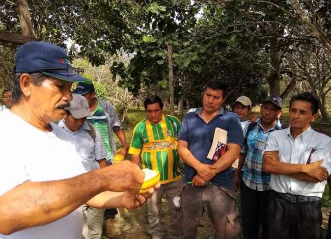 Productores líderes beneficiarios del proyecto “Ampliación y Mejoramiento de los Servicios de Apoyo al Desarrollo Productivo de la Cadena del cacao a los Productores en la Región San Martín”, del Gobierno Regional de San Martín, se trasladaron al Fundo Santa Fe, ubicado en el caserío Bolívar, jurisdicción del distrito de Pólvora, en la provincia de Tocache, para realizar una pasantía en las parcelas de Edil Sandoval Arévalo, productor emblemático y exportador de cacao a Europa, con el objetivo de conocer el proceso del manejo integrado del cultivo en mención, así como elevar la productividad del mismo.