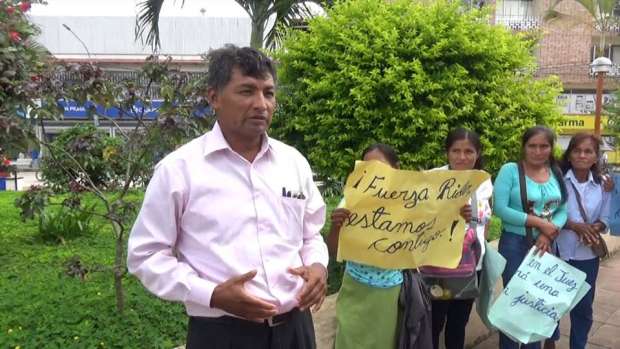 Un grupo de personas realizó ayer por la mañana un plantón en el frontis del Poder Judicial de Tarapoto, respaldando al profesor Rider Sandoval Herrera, denunciado por presuntos tocamientos indebido en contra de la hija de una ciudadana mexicana. El docente alega inocencia indicando que nada tiene que ver en el delito que le imputan.