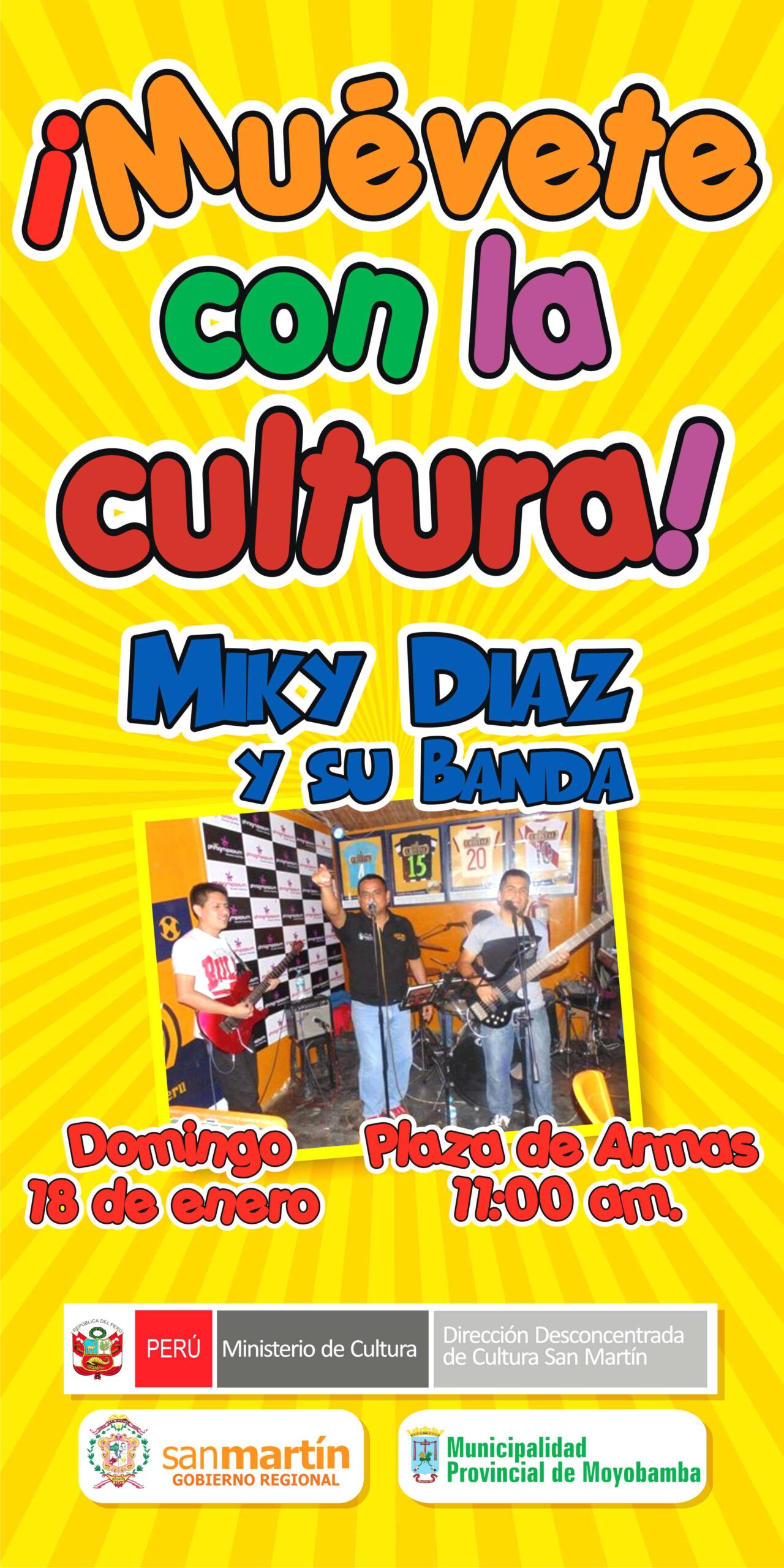 Todos están invitados a moverse y divertirse con la cultura y la buena música de Miky Díaz y su banda, que está siempre participando en distintos eventos en la región y en la ciudad de Lima.