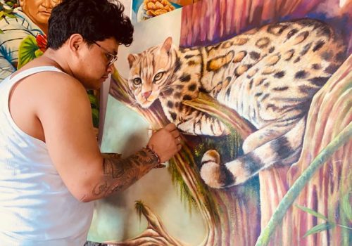 En esta exposición se intenta plasmar las vivencias y cómo perciben el mundo los autores, quienes realizaron entre uno a dos cuadros artísticos. “Una de las obras la he denominado “Tigrillo” por ser uno de los felinos más grande de la Amazonía que se encuentra en peligro de extinción y la otra obra es una temática que estoy trabajando y se llama Néctar, que es la conexión entre las flores y el ser humano” comenta Teo Baneo (24), artista plástico de Yurimaguas, Loreto.