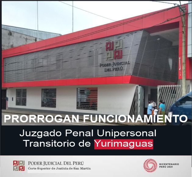 PRORROGAN FUNCIONAMIENTO DEL JUZGADO PENAL UNIPERSONAL TRANSITORIO DE YURIMAGUAS