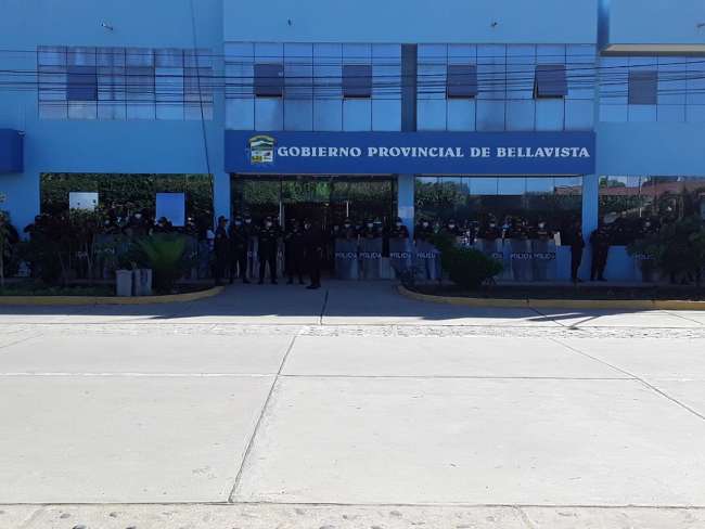 Exigiendo la vacancia del alcalde de la provincia de Bellavista, Eduar Guevara Gallardo, ayer por la mañana un grupo de pobladores se enfrentó en los exteriores de la municipalidad de esa jurisdicción con personas que defienden la gestión de la autoridad edil. Agentes de la Policía Nacional tuvieron que actuar de inmediato para evitar un posible derramamiento de sangre.