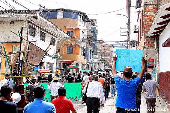 La única parada de la manifestación, que se trasladaba al ritmo del bombo baile, fue la conferencia de prensa desarrollada por la comisión de aniversario de Tarapoto, presidida por el regidor Délfor Ponce de León. Tras breves altercados con la Policía Nacional finalmente fue el mismo regidor quien permitió el ingreso de los protestantes a la conferencia, quienes le contestaron con el estribillo “esto no es apoyo, esto es protesta.
