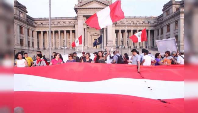 Esta manifestación inició a las 4:00 p.m. en la puerta principal del Poder Judicial. Los protestantes con banderas y pancartas exigían que el juez Concepción Carhuancho retome sus labores en el caso que involucra a Keiko Fujimori.